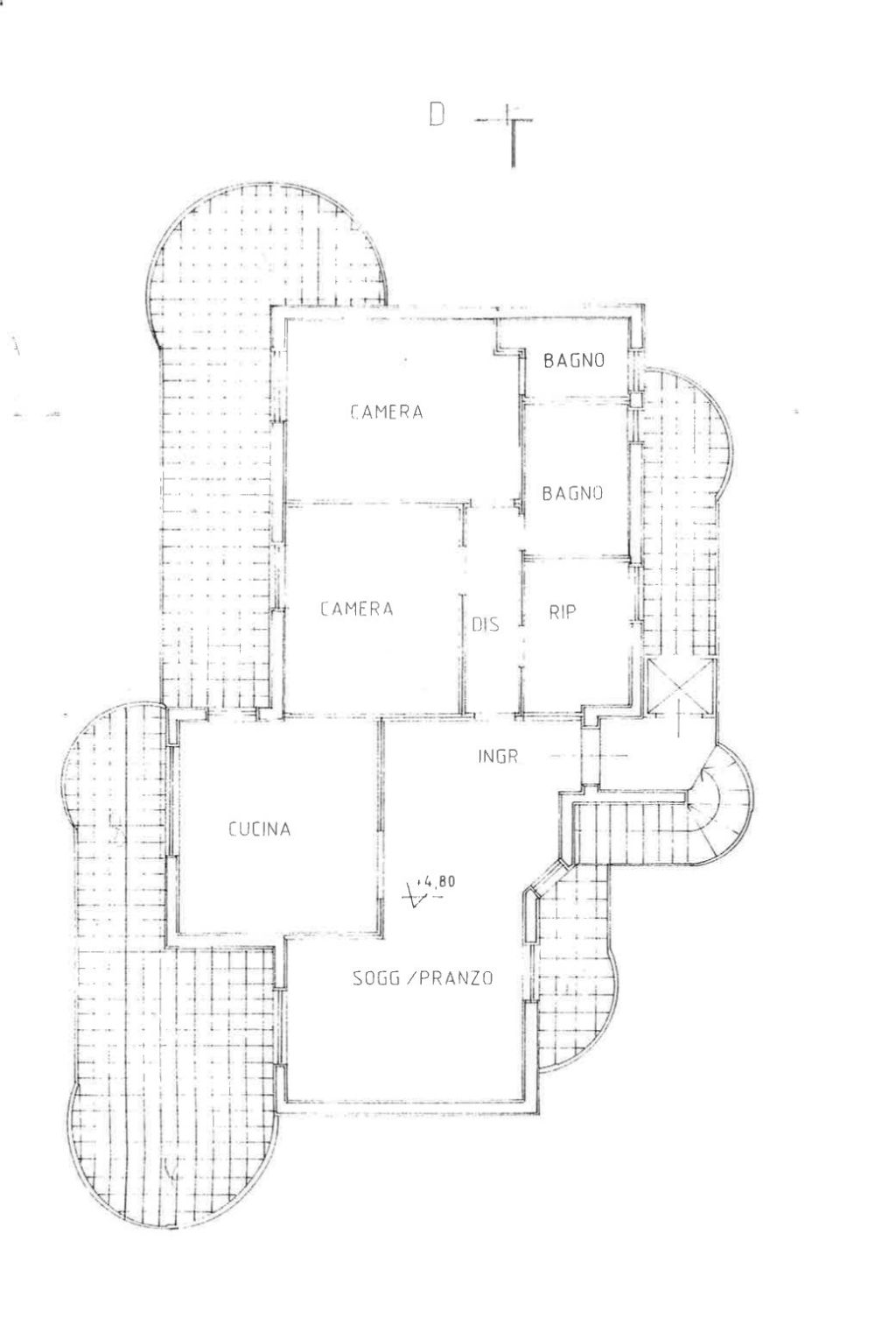 L’appartamento si presenta in buono stato ed è così composto da un ampio soggiorno, accogliente e luminoso, cucina abitabile, perfetta per la vita quotidiana, due camere matrimoniali, intime e confortevoli, due bagni, comodo ripostiglio, due balconi, due terrazzi vivibili